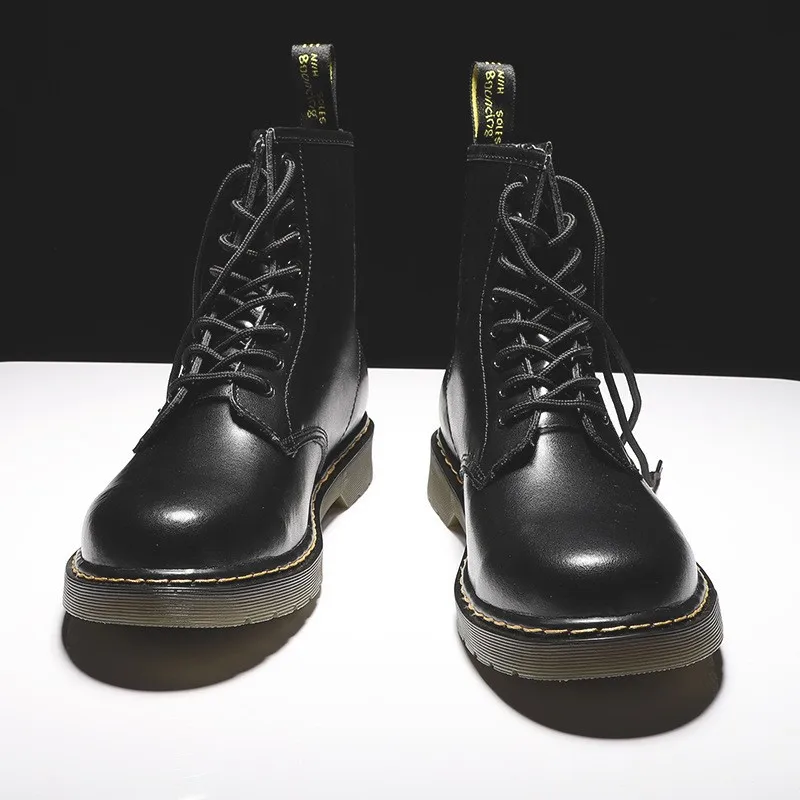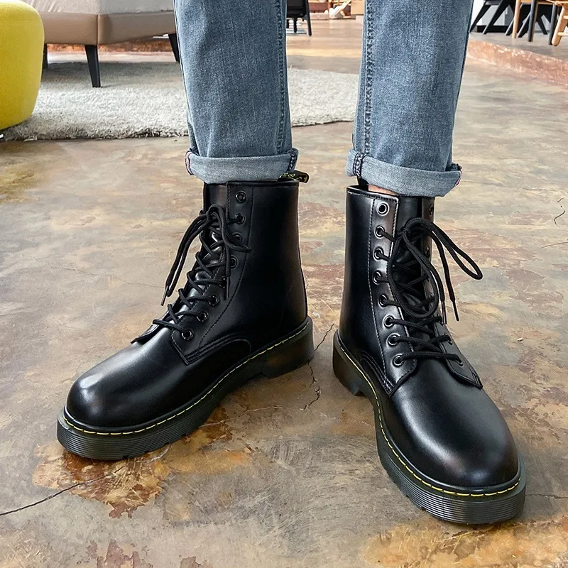 Leather Men's Winter Boots With Fleece British Style Work Boots High Quality Leather High Top Winter Boots